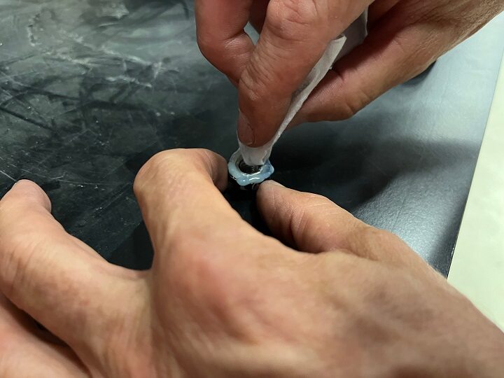 Note1x nut, clean the remaining adhesive from thread using M6 restoring tap