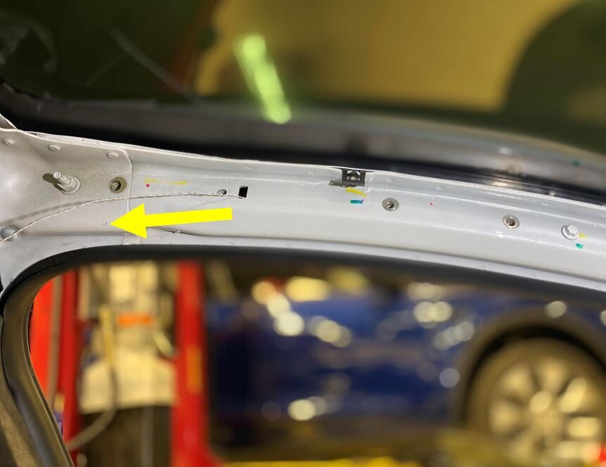 NoteMake sure there is enough wire length on basis of measurements between square hole in the LH A-pillar and affected riv nut hole