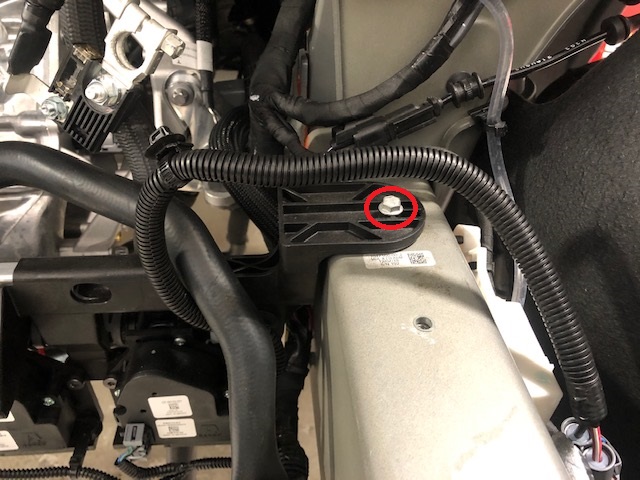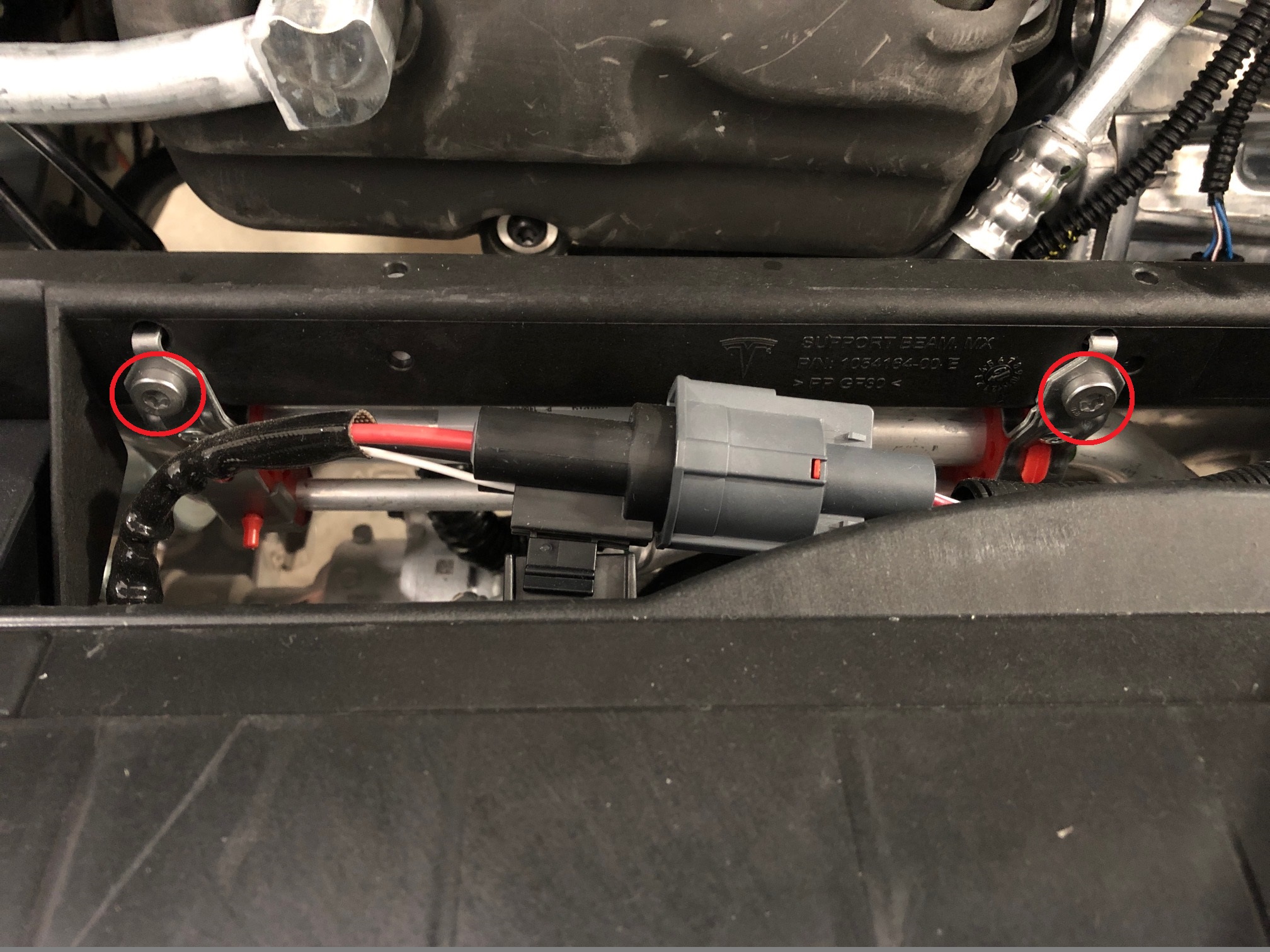 Remove the bolts (x2, torque 9 Nm) that attach the condenser support beam