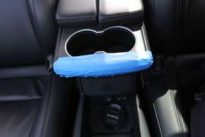 Apply masking tape to the front of the cup holder trim to avoid damage during removal.