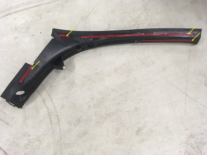 NoteUse IPA wipes to clean trough trim where double sided tape is attached to, Allow 1 minute for dry time, Apply 3M tape primer to tape surface .