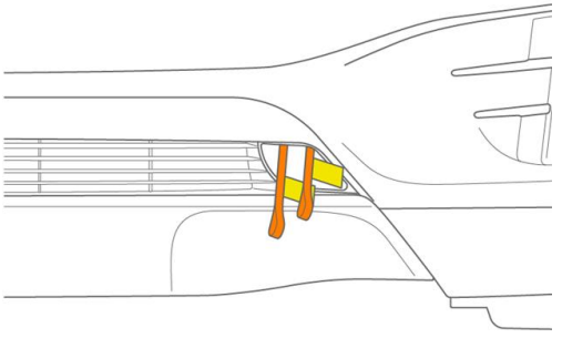 - Locate the tow eye cover, insert a small, flat screwdriver into the top and bottom slots, and then release the snaps and pull the cover towards you.