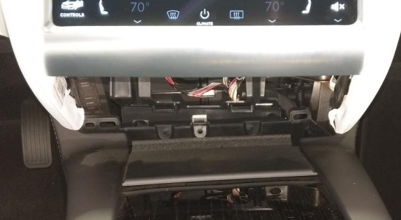 Locate the rectangular vehicle communication harness under the touchscreen, gently pull it toward you.