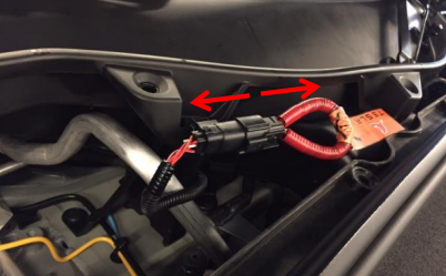 Externally powering the RCM refers to applying power to the RCM via the vehicle’s “First Responder’s Loop,” located in the front trunk. This procedure can be used if a key-fob is not available, 12V DC power is not available to the vehicle system, or the vehicle is otherwise unable to turn on.