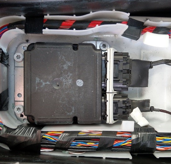 Connect the Tesla Direct-To-Module EDR Retrieval Cable connectors (x2) to the RCM.