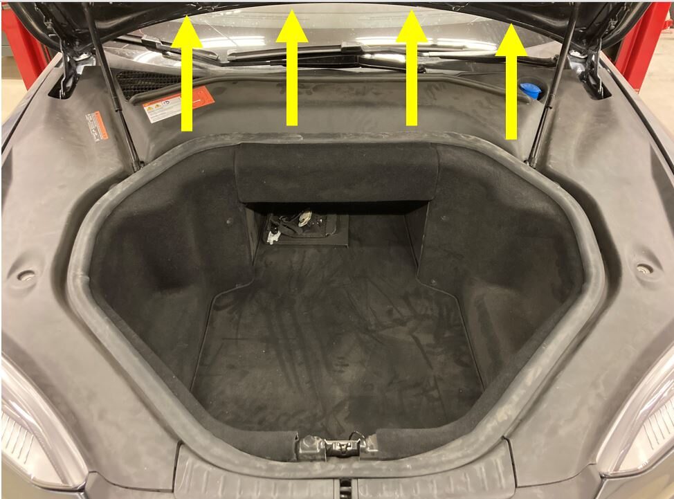 Figure 1. First responder loop for a Model S manufactured after April 10, 2016 shown; First responder loop for vehicles manufactured before April 10, 2016 is similar - Connect the negative terminal of the external 12V power source to the vehicle chassis.