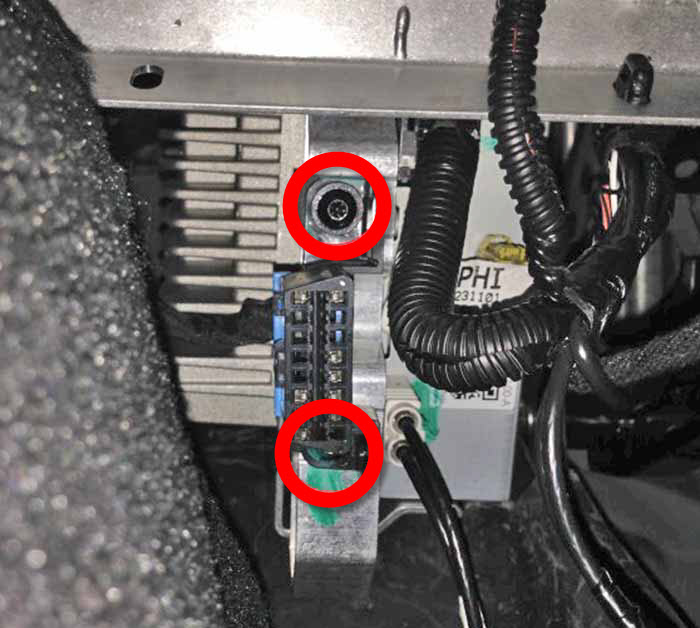 Remove the screws that secure the OBD connector to the amplifier/tuner bracket
