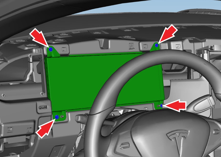 Remove the screws (x4) that secure the instrument cluster to the IP carrier (torque 2 Nm).