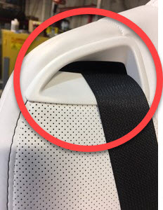 Lift up the top part of the seat back trim, feed the seat belt through the