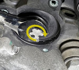 - Use a 14mm combination wrench to manually turn the brake piston clockwise to disengage the LH rear EPB from the brake rotor assembly.