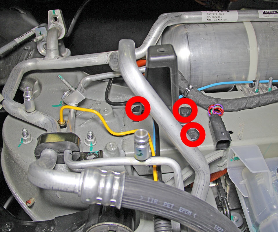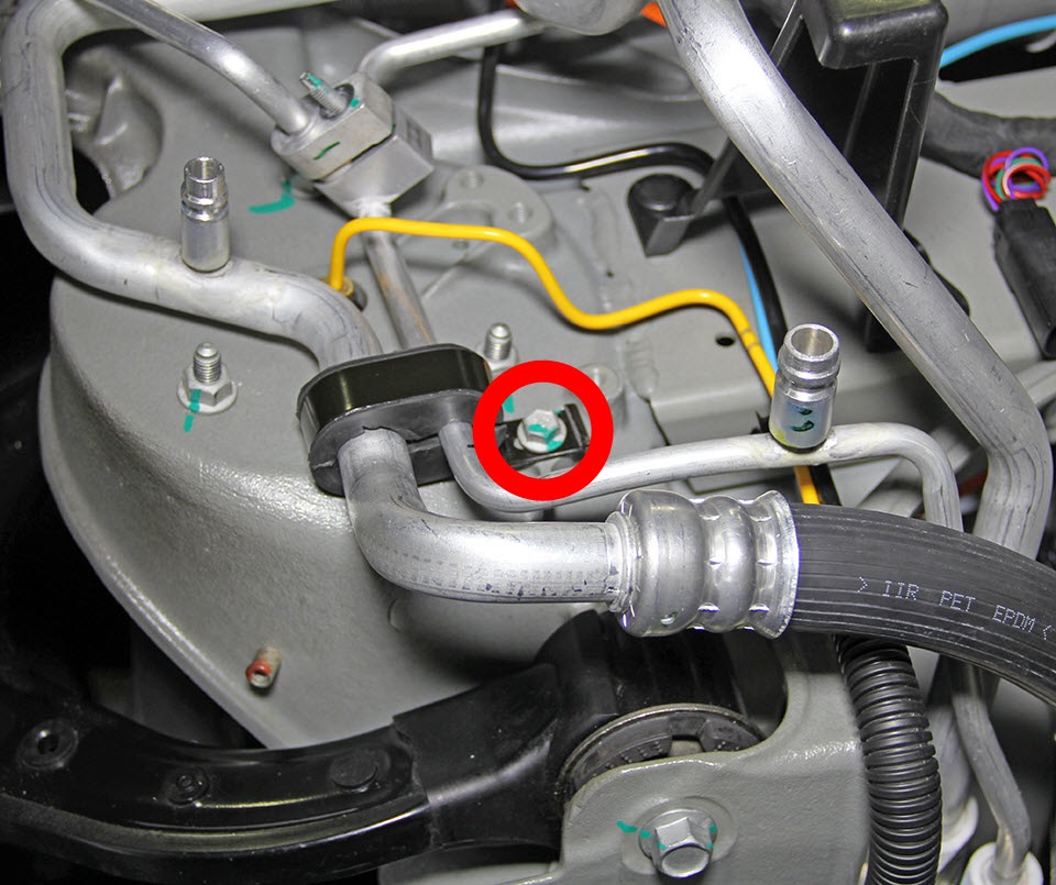 Carefully move the charge port high/low pressure pipes away from the bulkhead.
