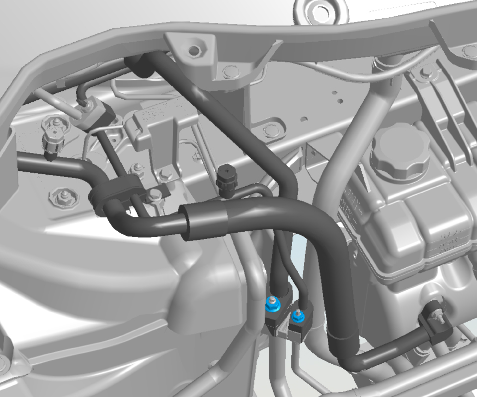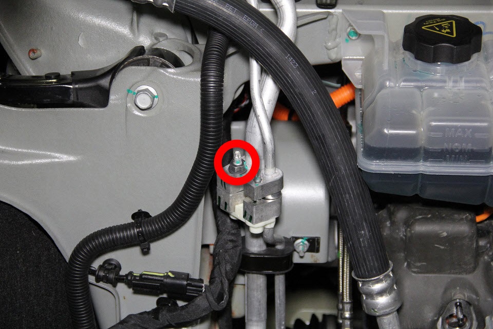- Remove the charge port high/low pressure pipes from the vehicle.