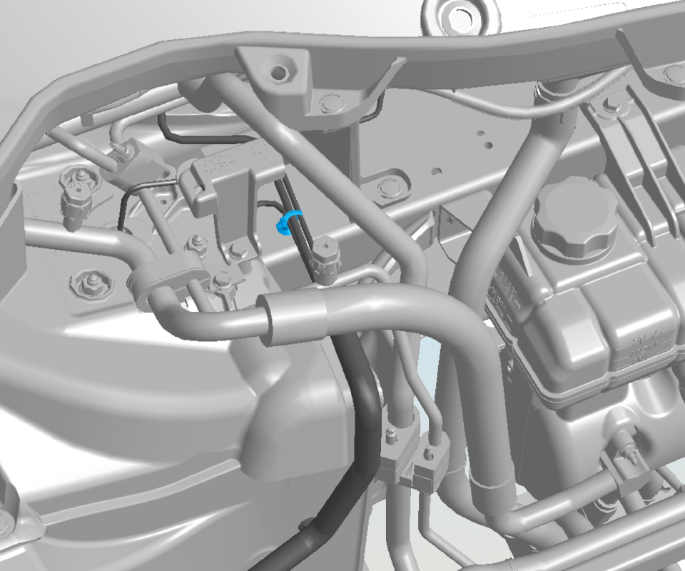 Carefully maneuver the charge port high/low pressure pipes toward the front of the vehicle.