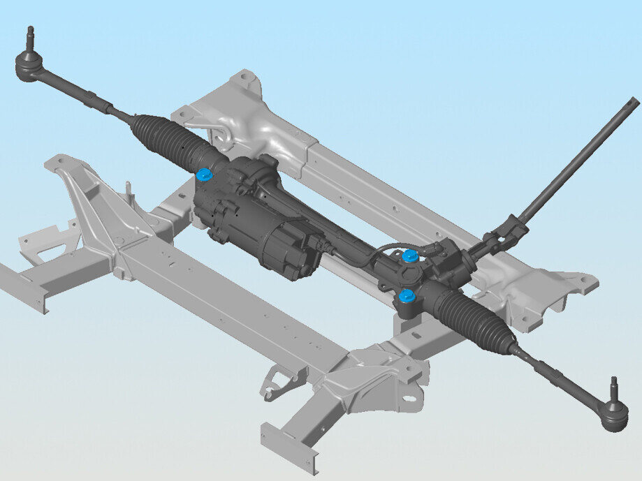 Remove and discard the fasteners that attach the steering rack to the subframe (torque 175 Nm).