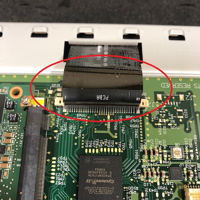 CAUTIONThe ribbon cables are reused. Avoid scratching, bending, or damaging the ribbon cable or connection.