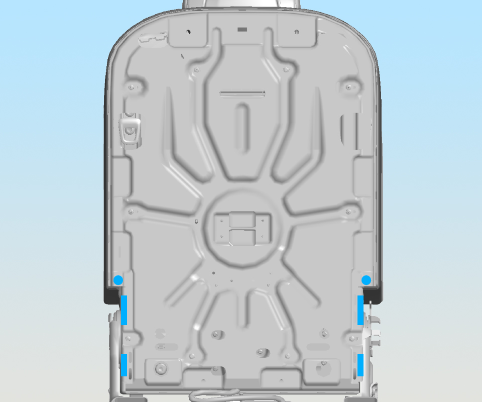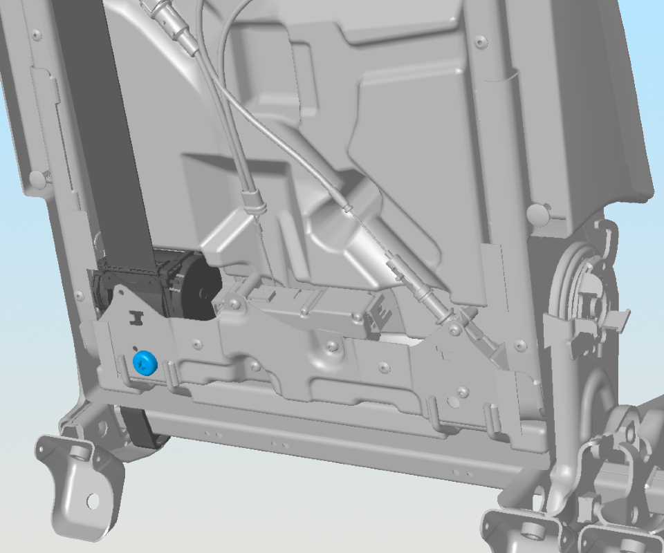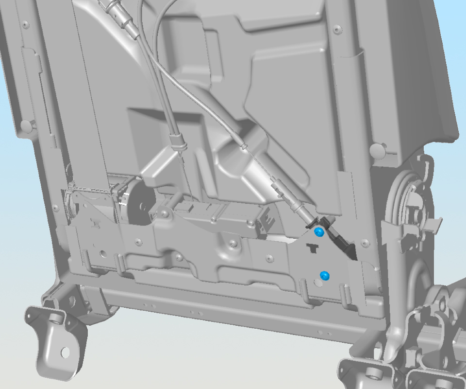 Carefully separate the seat back panel from the seat frame to access the recliner cables. Cut the cable tie and separate the recliner cables from the seat back panel.
