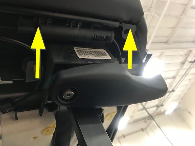 NoteSlide release handle assembly towards front of the seat to remove from seat frame