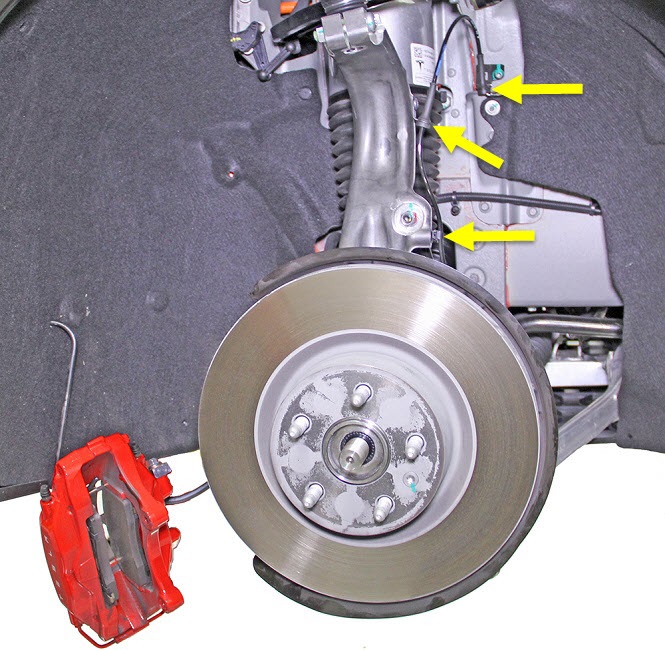 NoteThe following image shows the caliper removed from the rotor.