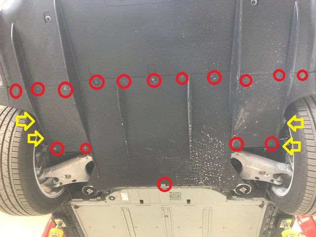 push clips (x2) that secures the rear aero shield (torque 4 Nm), and then