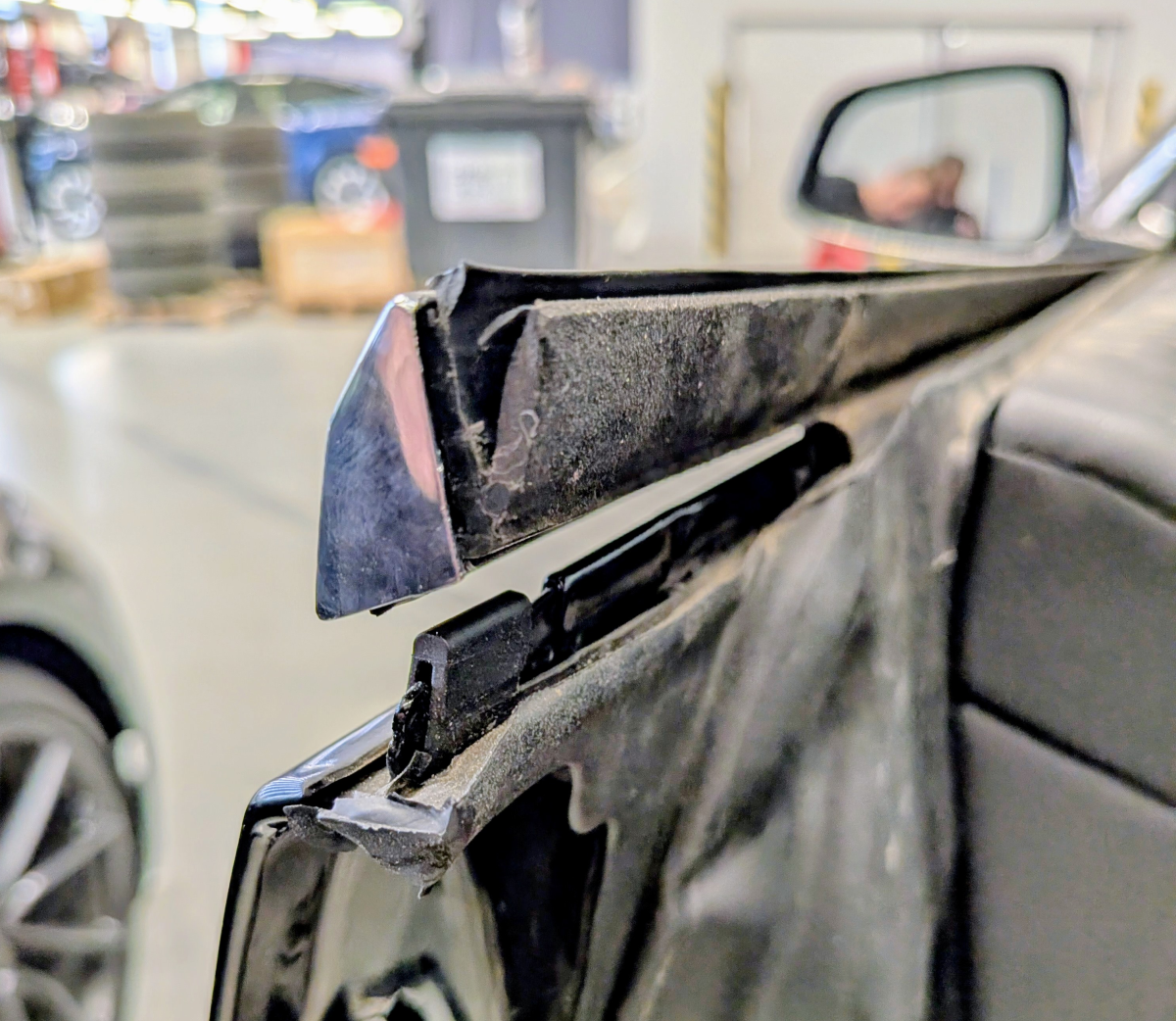 À l'aide d'un outil de finition en plastique, libérez le joint d'étanchéité de ceinture de sécurité extérieure de la porte tout en évitant de déloger les garnitures chromées.