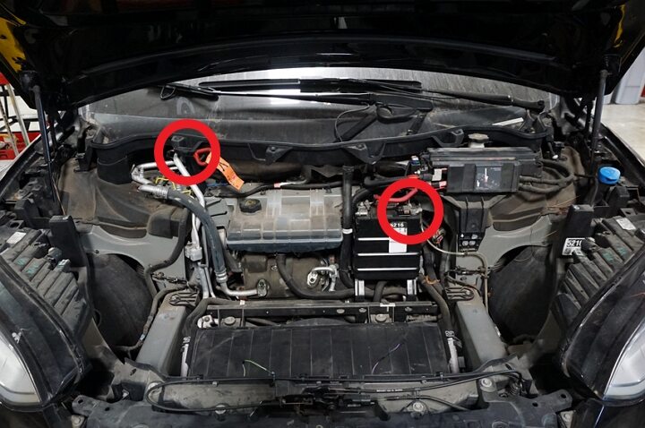 Remarque1x nut, 10mm, 5 Nm, 1x connector, Wait at least 2 minutes before disconnecting modules or HV components
