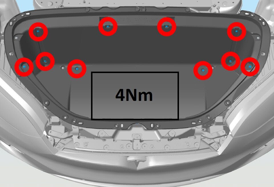 Remarque10x bolts, 10mm, 4 Nm, 10x bolts, 10mm, 7 Nm, Hand start all bolts first then tighten with tools