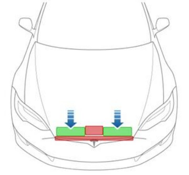 RemarquePress firmly in green highlighted areas (see image), Damage may result from pressure elsewhere on hood