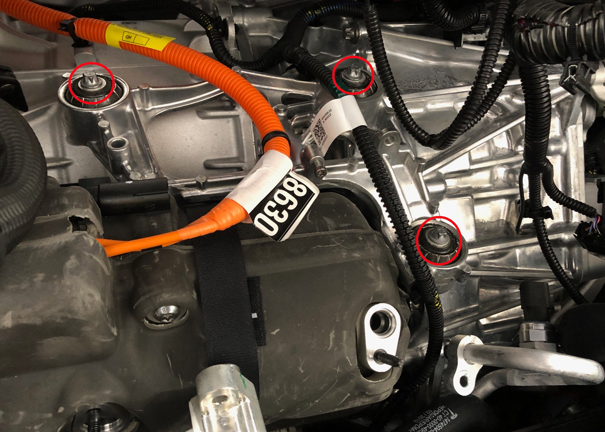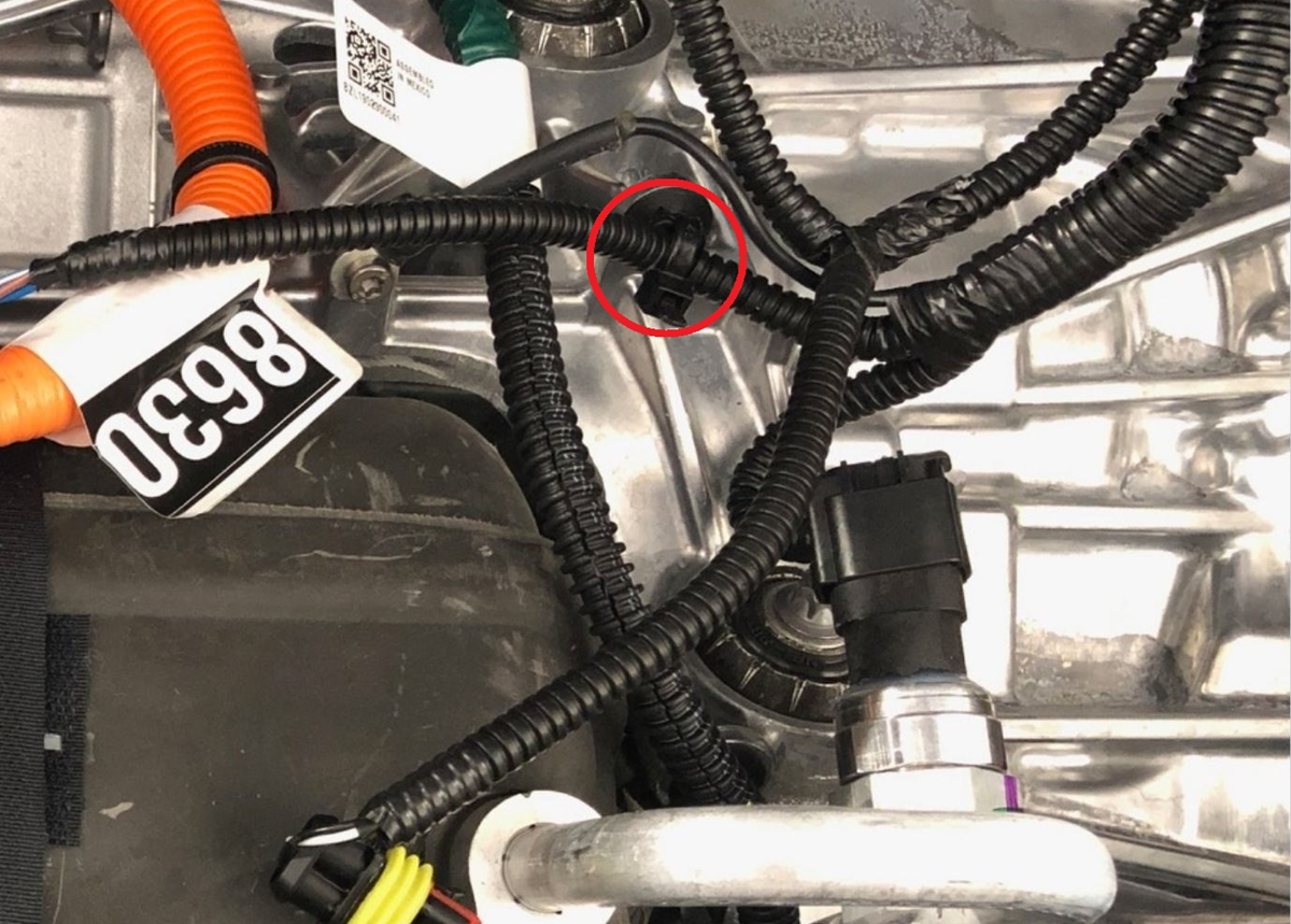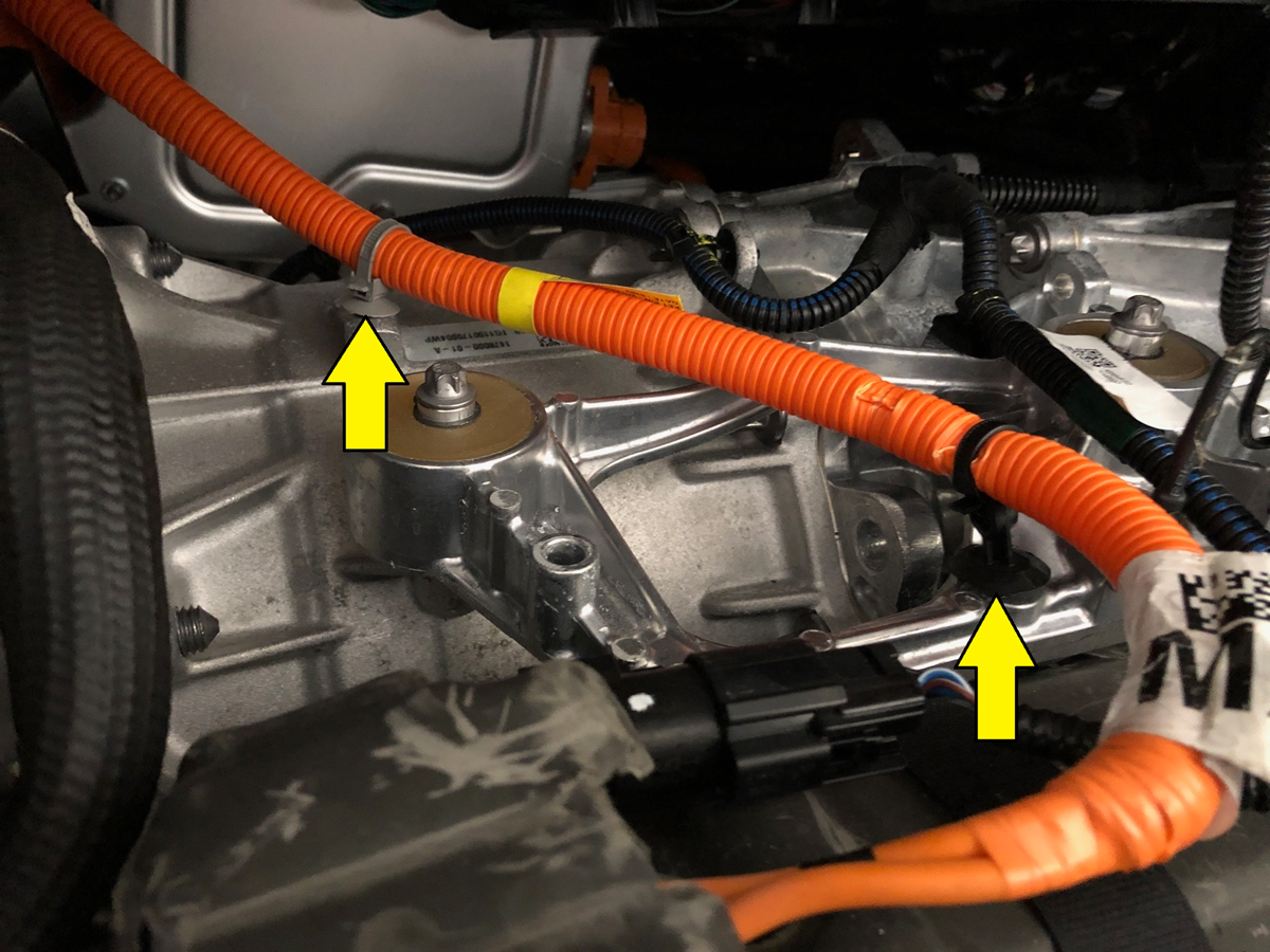 - Relâchez les attaches à garniture qui fixent le faisceau du compresseur de climatisation HT à l'unité d'entraînement avant.