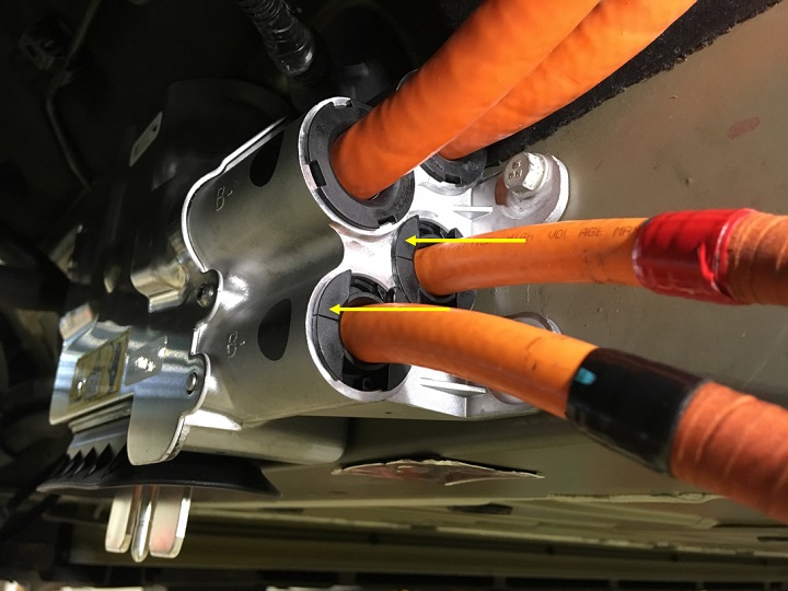 Après avoir inséré les nouveaux câbles HV dans le coupleur rapide, effectuez un test de traction pour vous assurer que les câbles sont correctement installés.