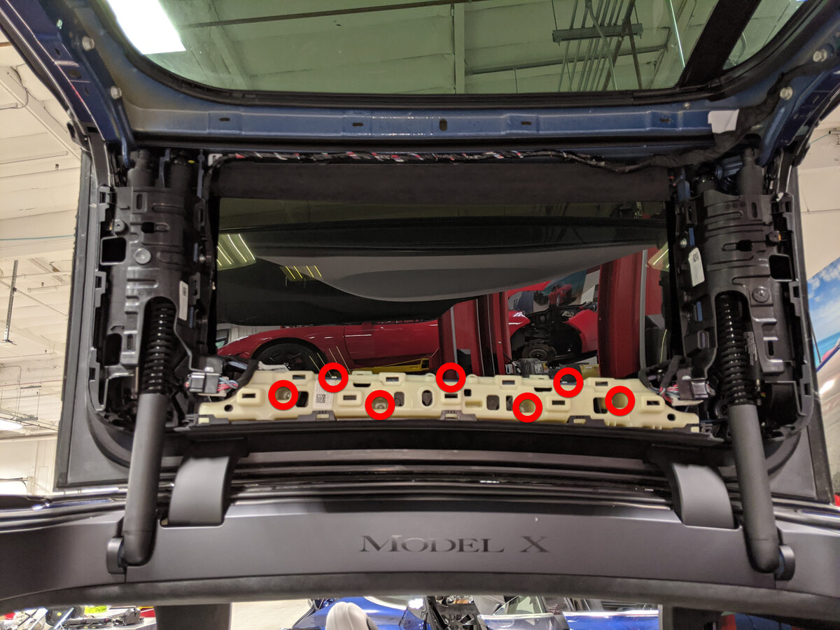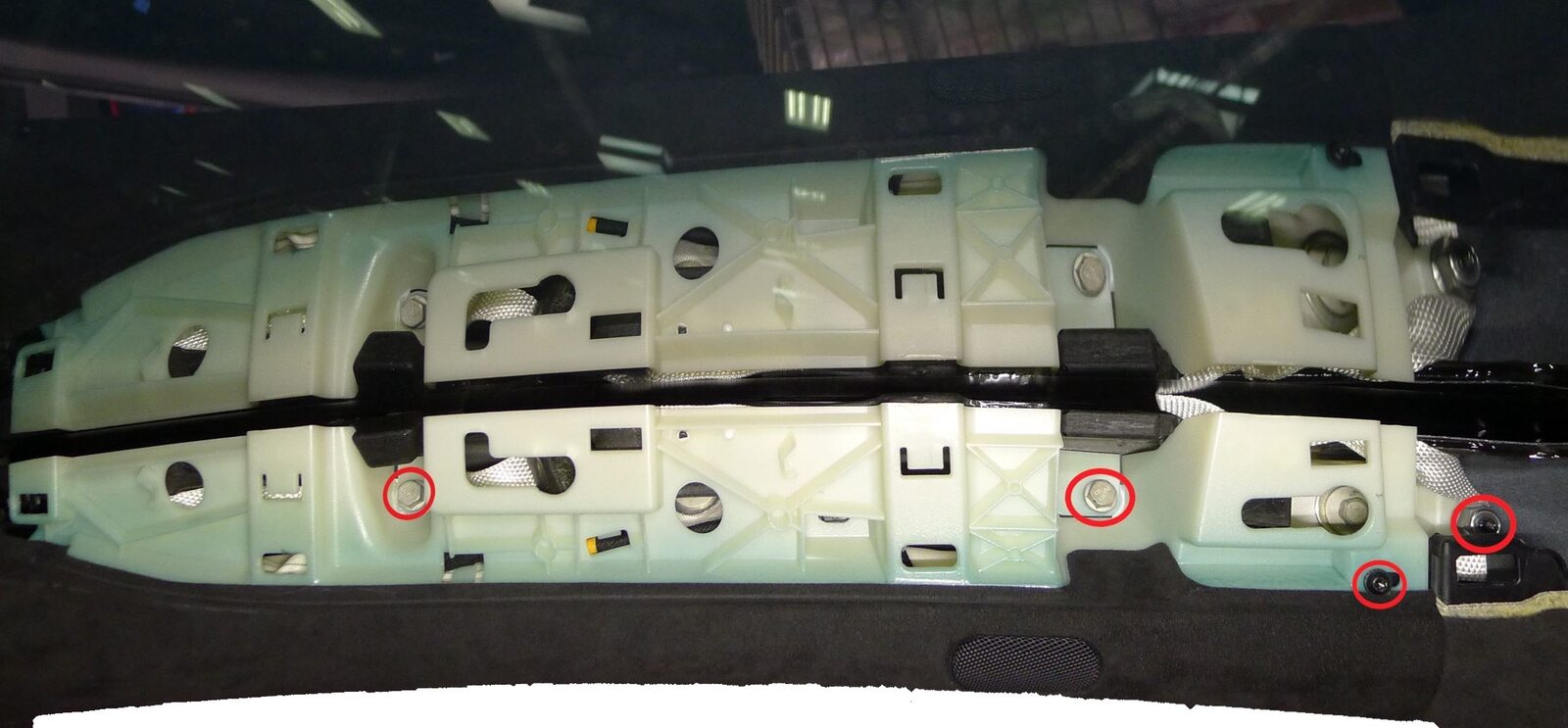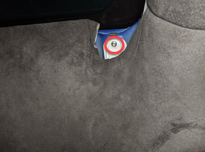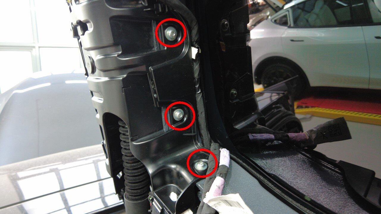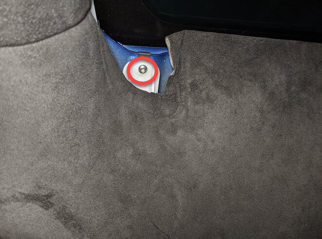 Remove fastener securing the LH B-pillar racetrack to spine racetrack