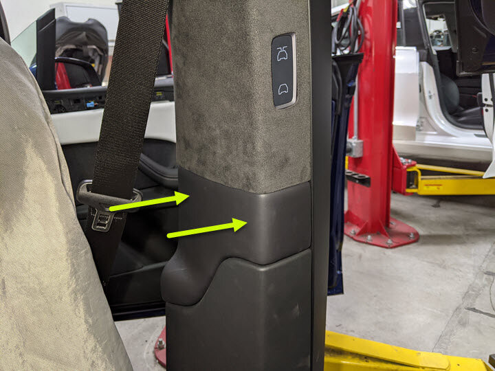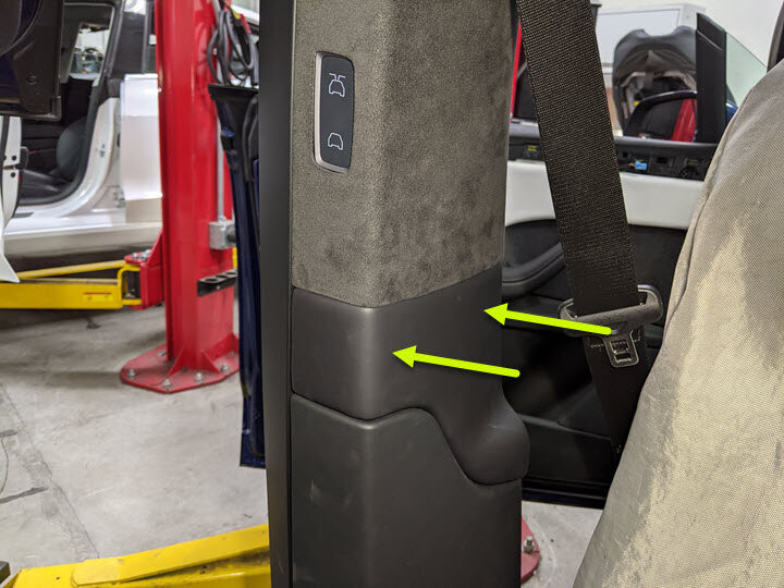 Remove the LH B-pillar racetrack from vehicle