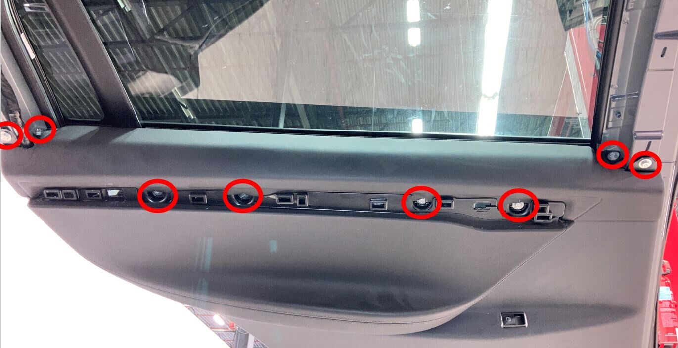 Remarque1x connector, 13 clips, replace all clips, Install door trim starting from top and make sure the door trim tap is fitted correctly on the inner belt seal