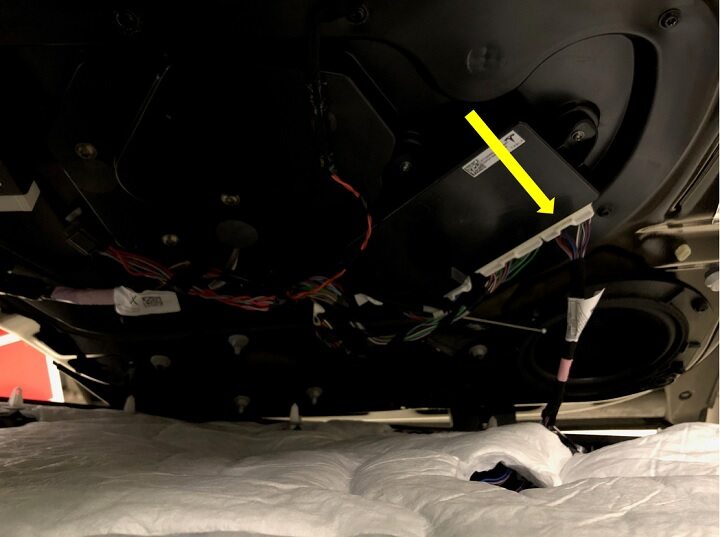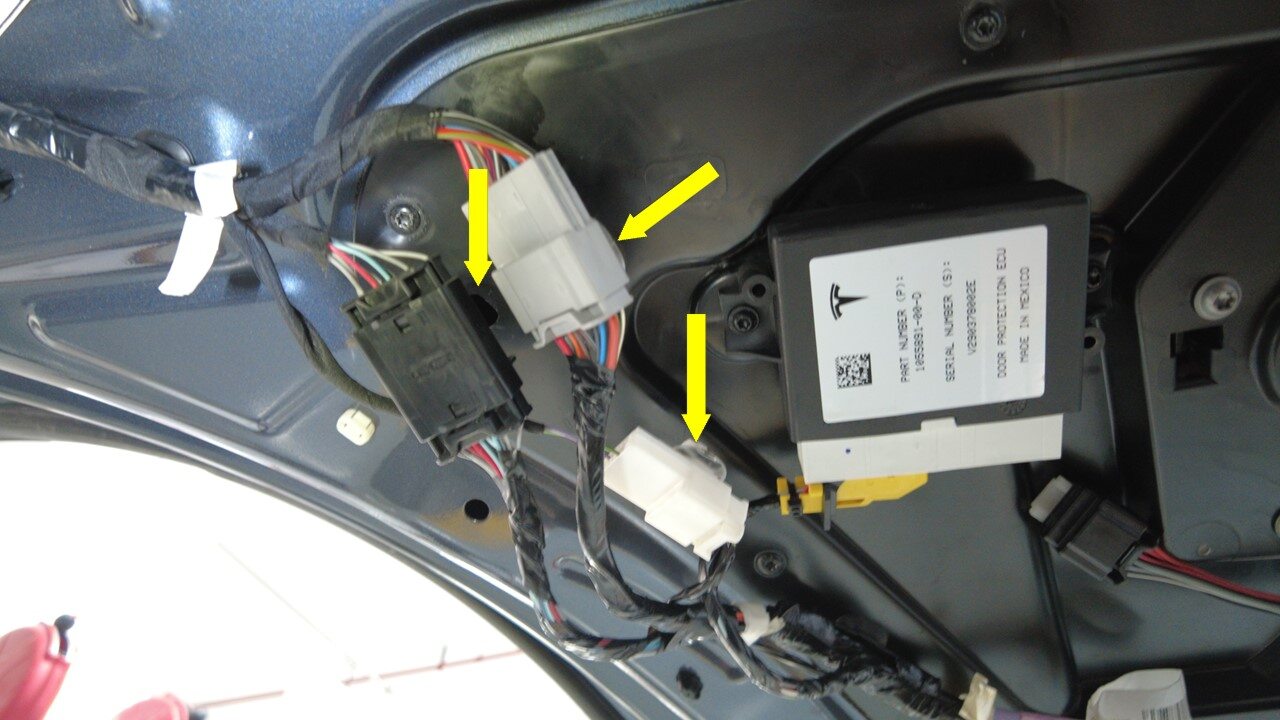 Disconnect LH rear door harness connectors from falcon door controller