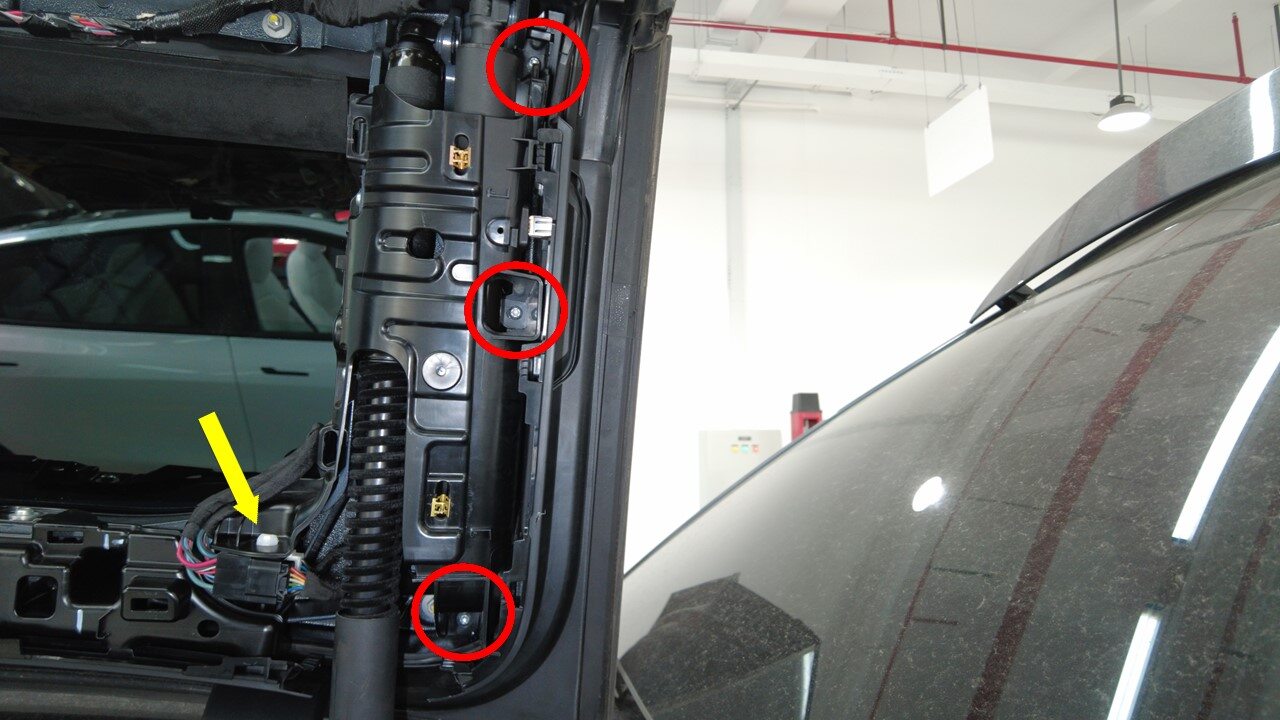 RemarqueHold the upper B-pillar button in the down position to manually calibrate, Door must be calibrated and closed for firmware to pass