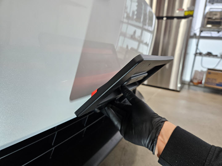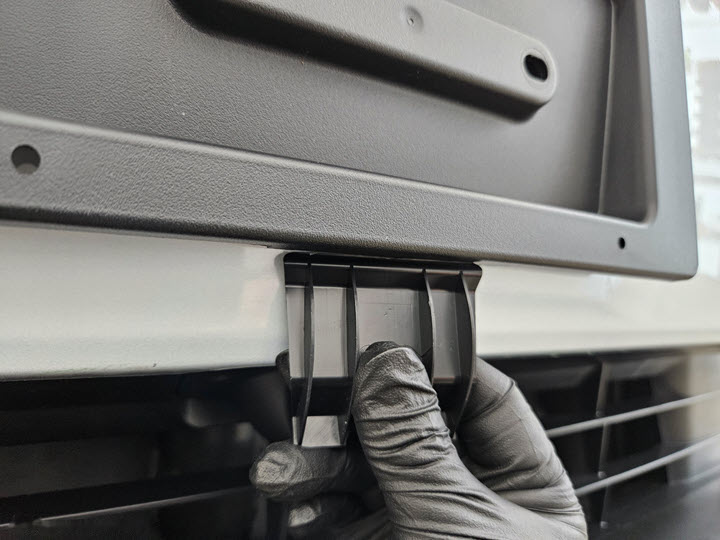 - Use IPA wipes to clean the front fascia surface in preparation for installation of the front license plate bracket, and allow 1 minute to dry.