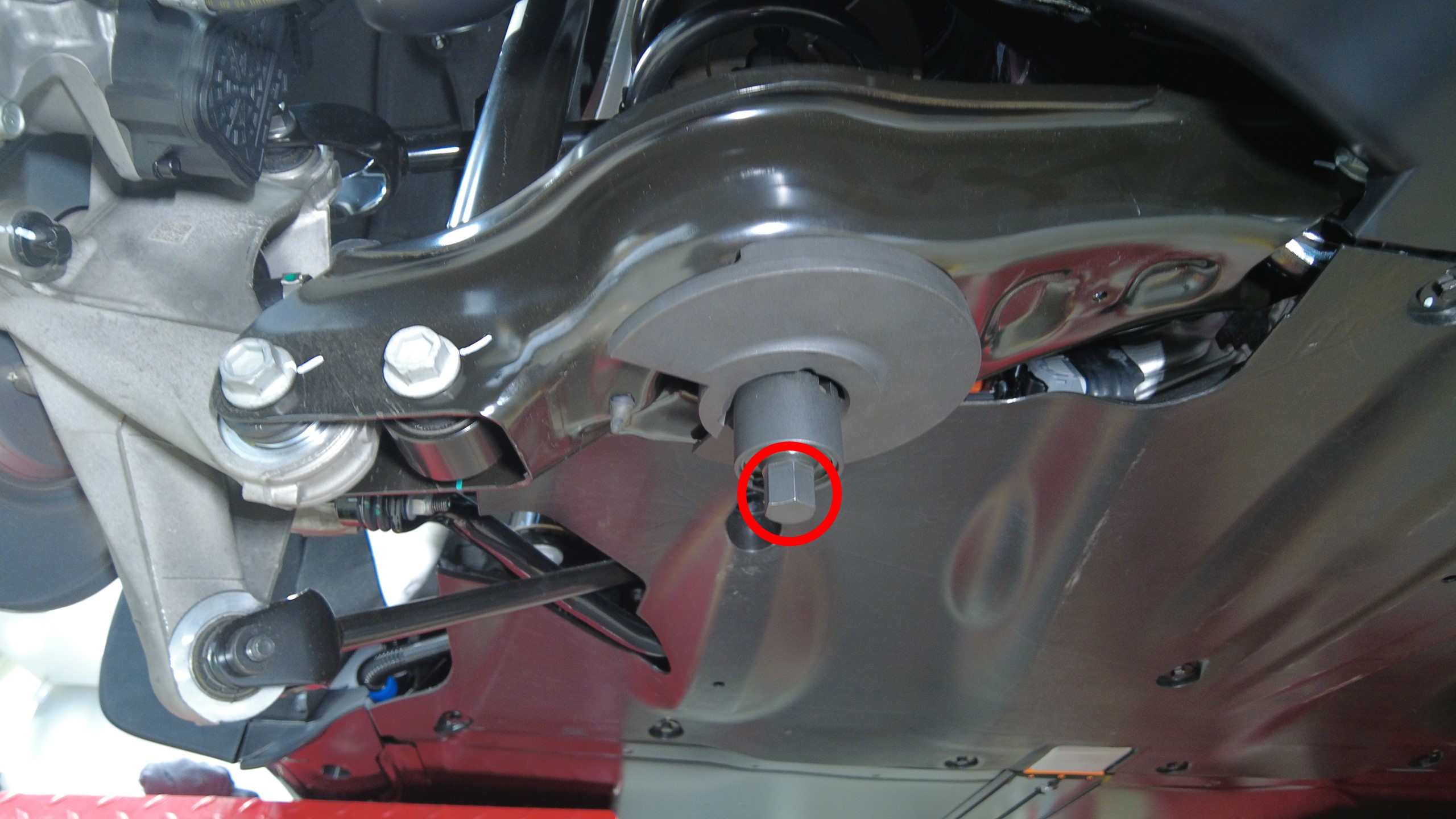 - Remove the support stand from underneath the LH rear hub jack adapter and remove the hub jack adapter from the LH rear hub.
