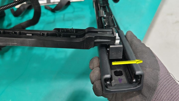 With assistance, remove the harness clips (x3) from the seat track motor bridge