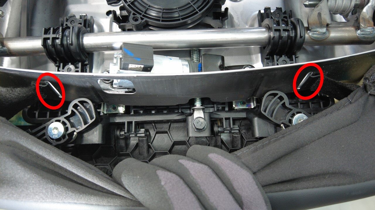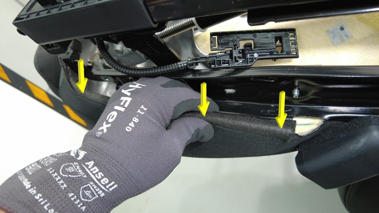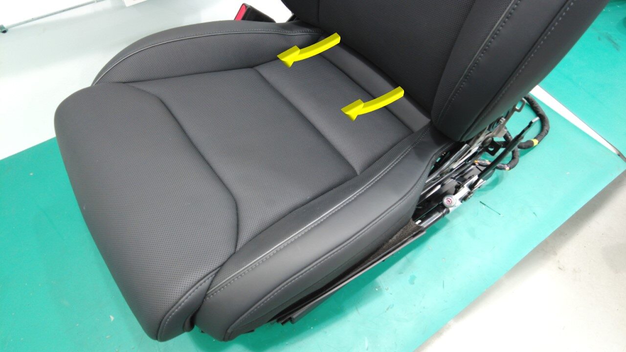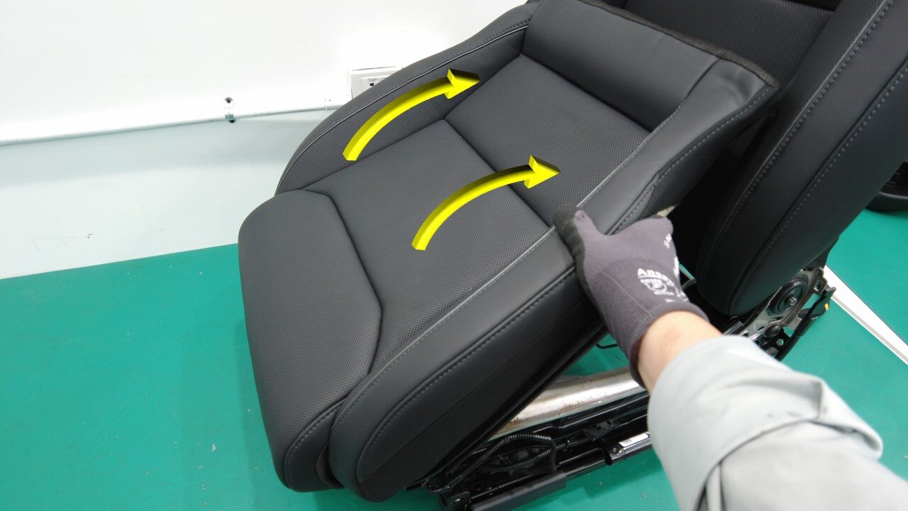 Install the clips (x2) that attach the seat cushion cover to the seat cushion