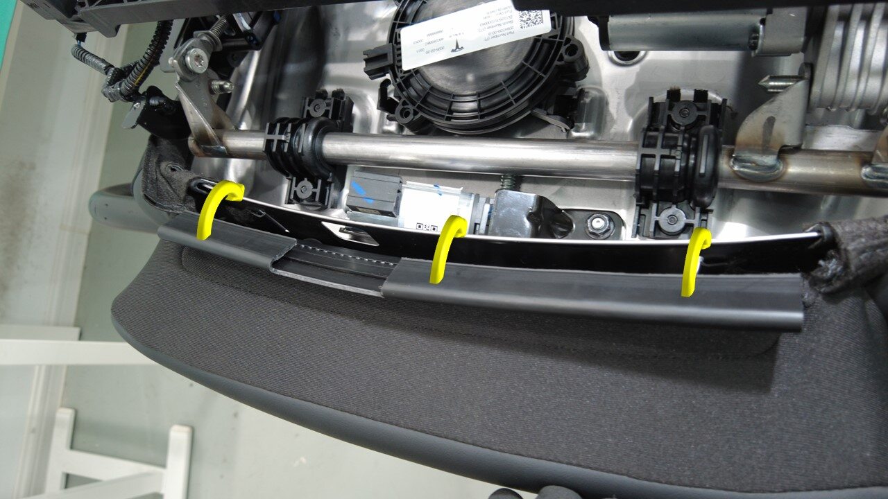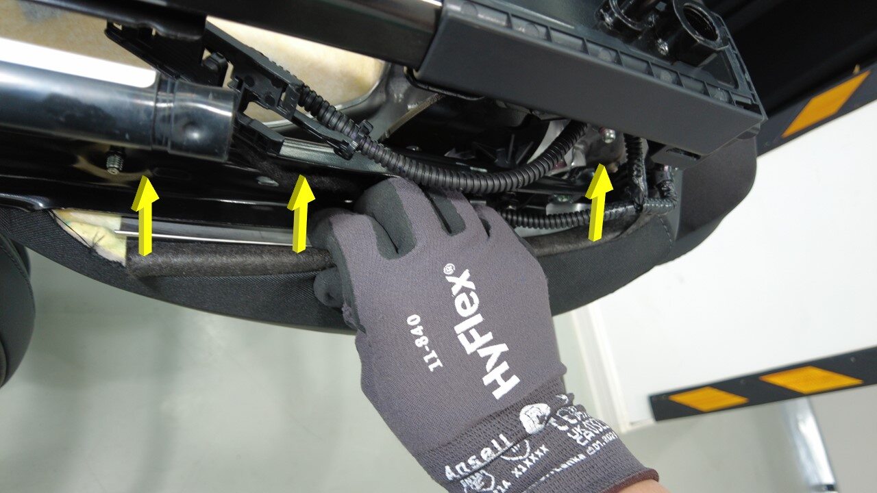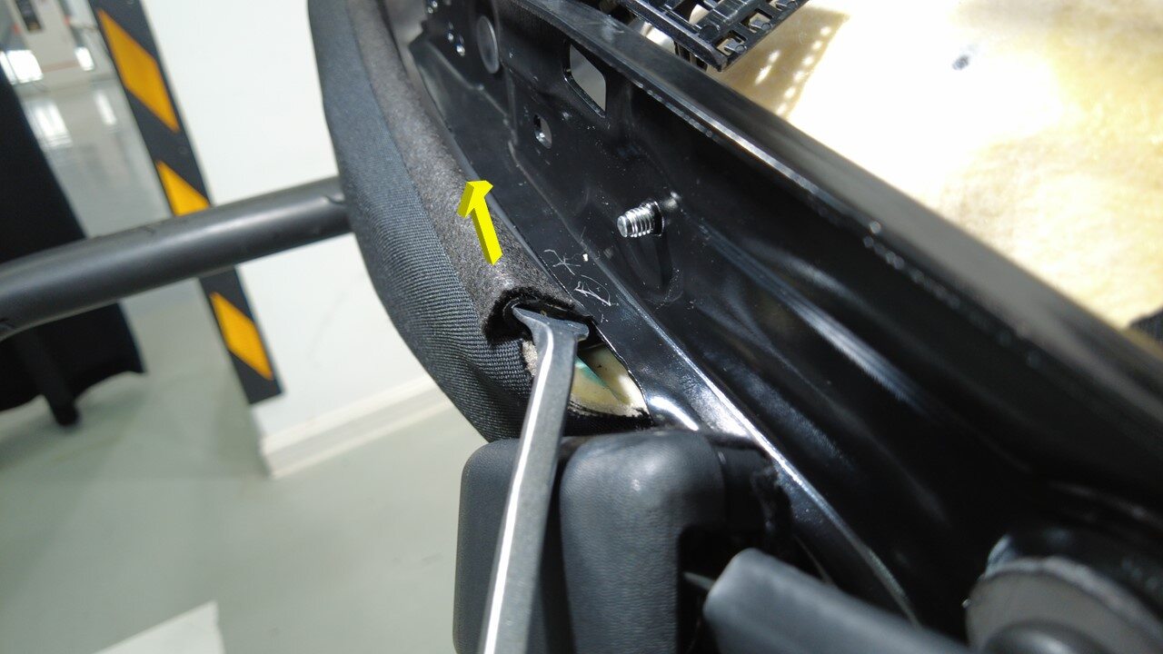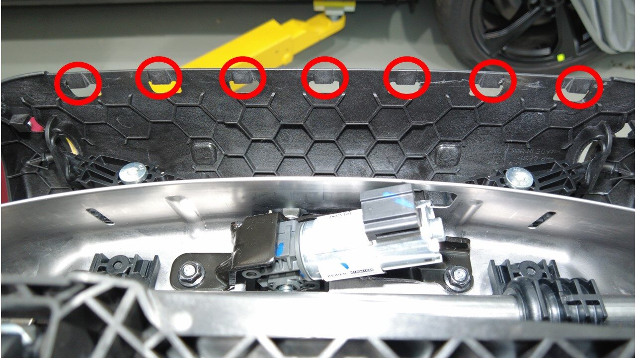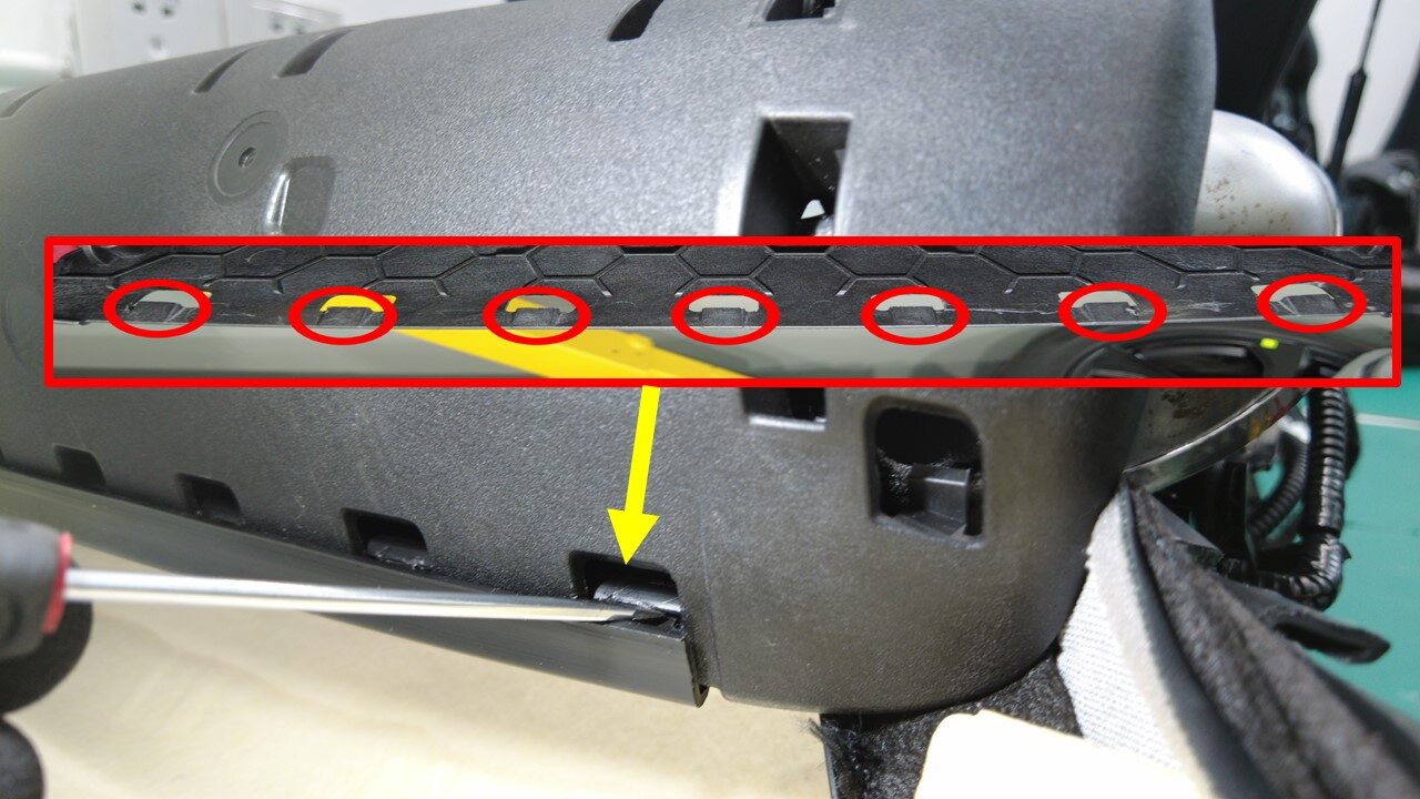 Install the clips (x2) that attach the seat cushion cover to the seat cushion