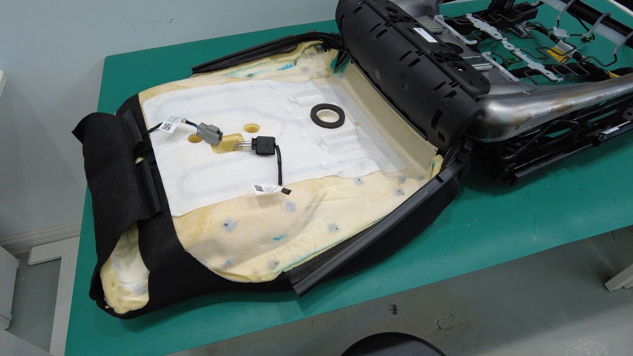 NoteMake sure that the seat heater connector and seat occupied sensor assembly pass through the seat suspension or frame.