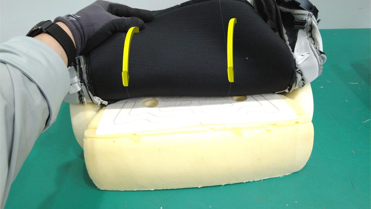 seat cushion foam pad assembly, and then lay the seat cushion horizontally with the