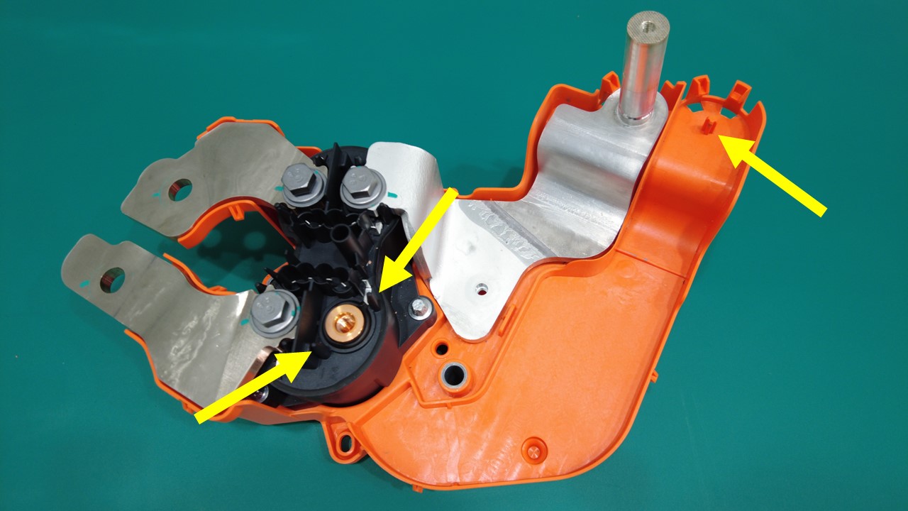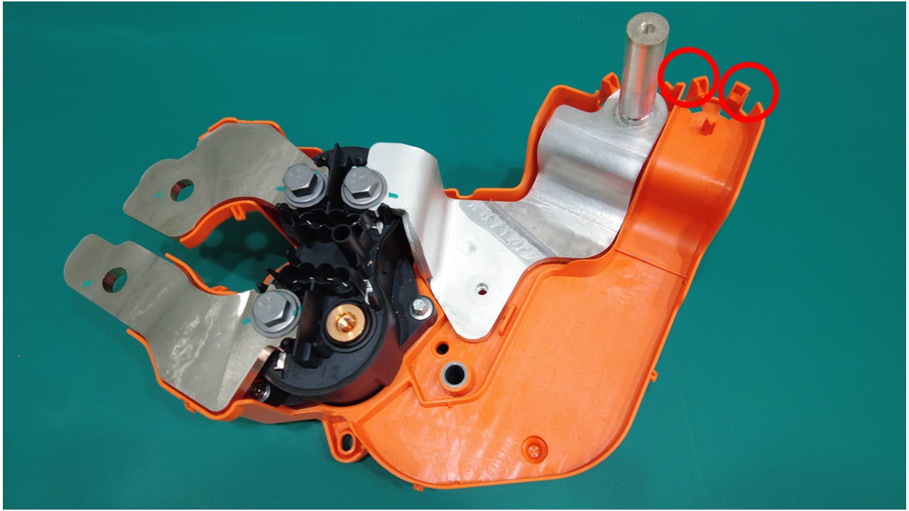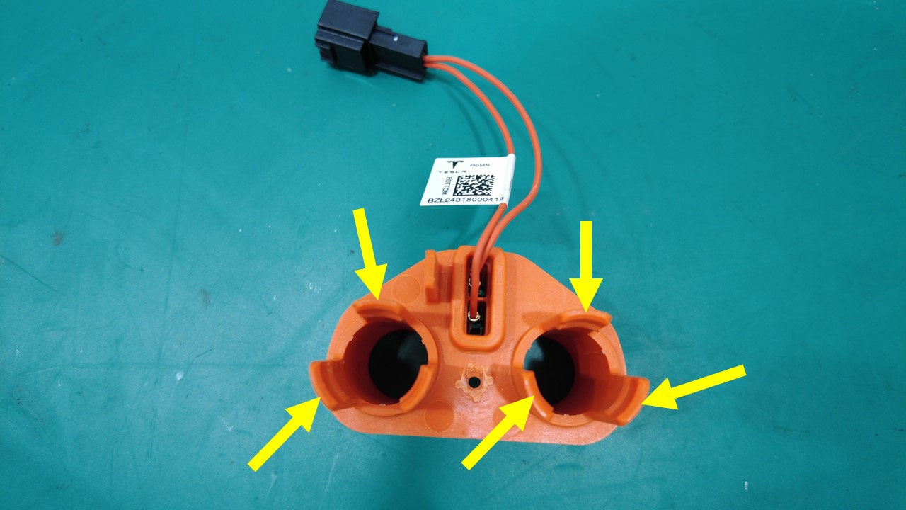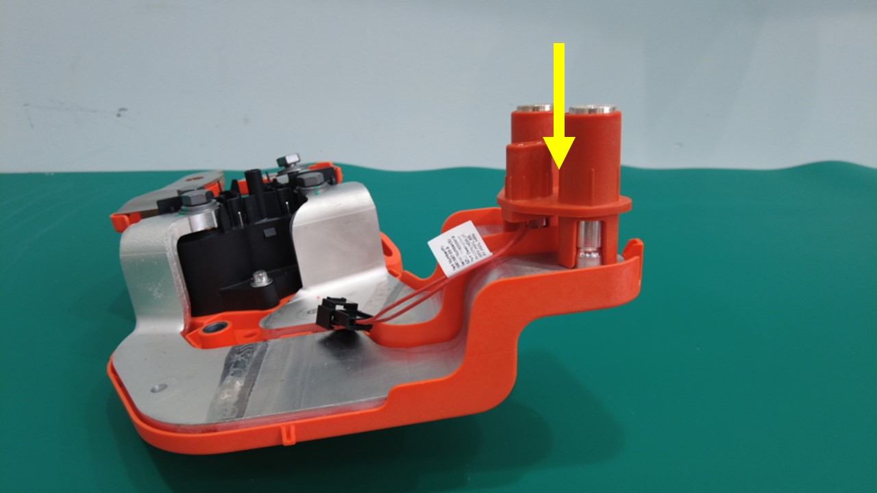 Monte el soporte de carga rápida de alta tensión en el conjunto del contactor de carga rápida y fije correctamente todas las pestañas (6 uds.).