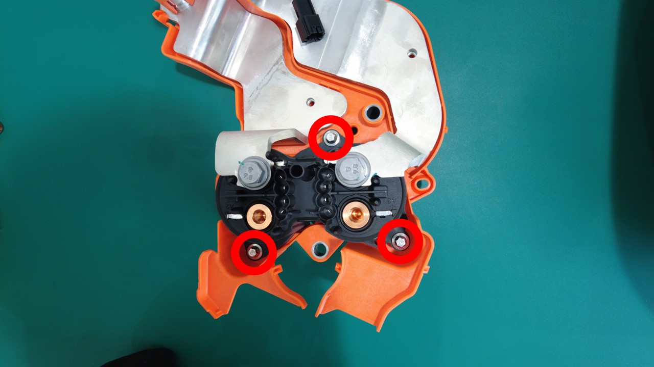 | Pernos (3 uds.) que fijan el aislante inferior de carga rápida al contactor de carga rápida |