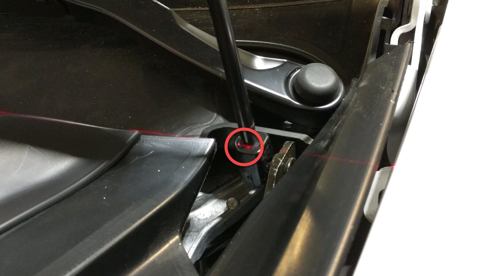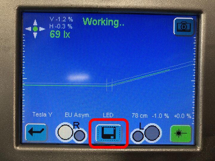 NotaTurn on the laser aimer to adjust the tester's horizontal and vertical position to the LH headlamp marking. Markings can be difficult to spot. Use of a piece of paper can aid in finding the center. Turn off the laser aimer before proceeding to the next step.