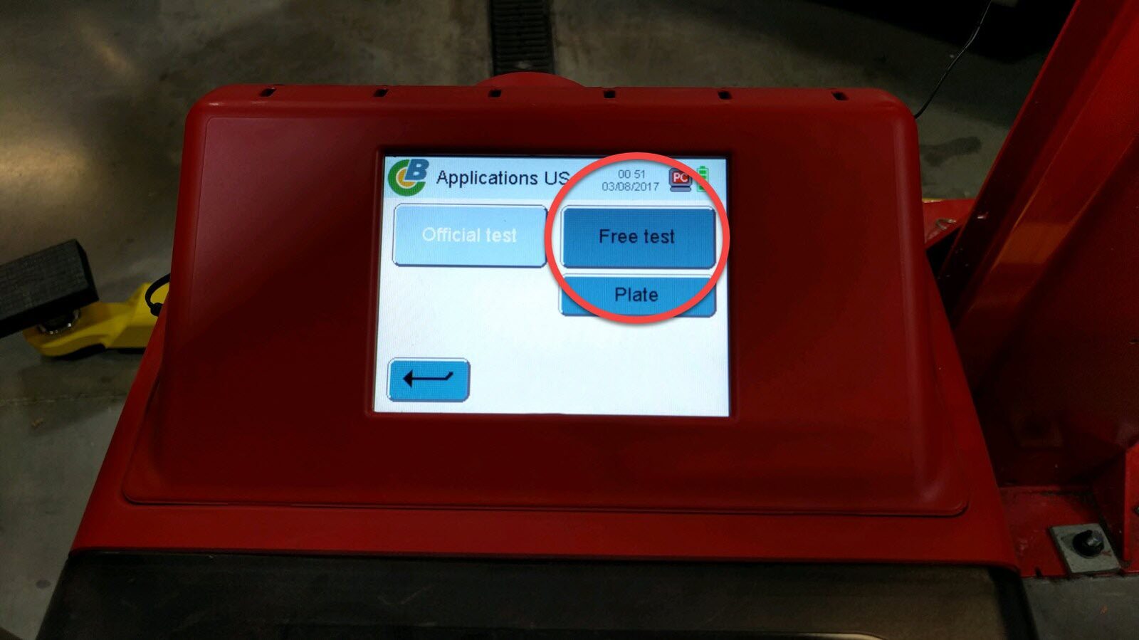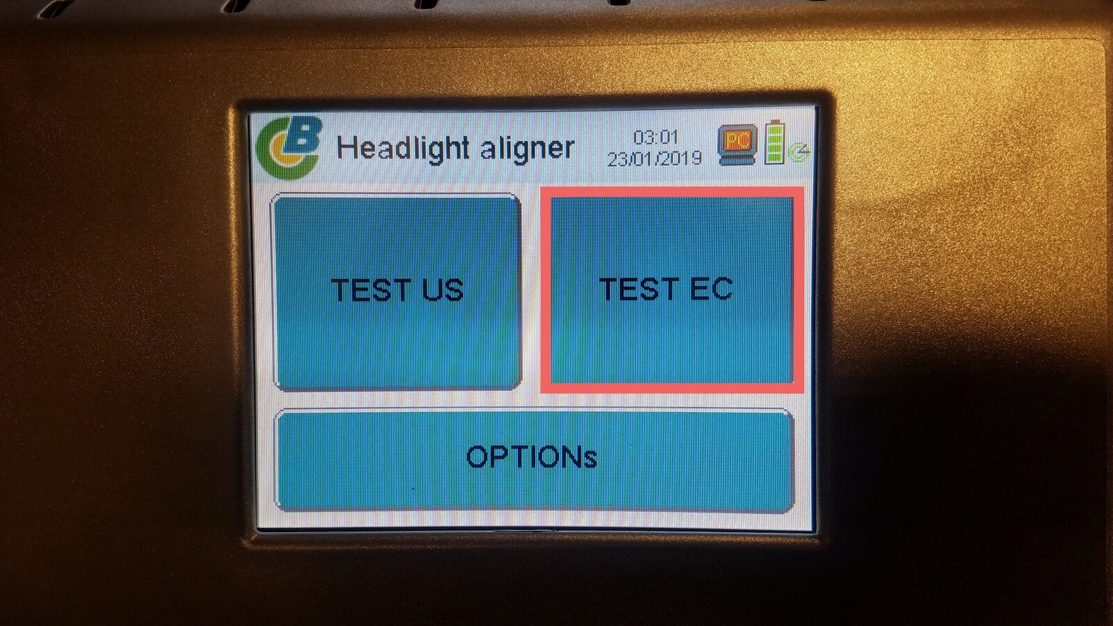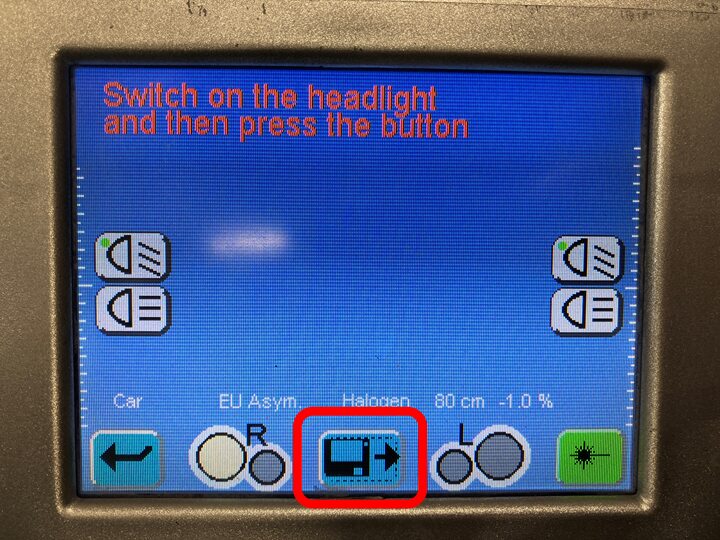 Initiate the test on the headlight aimer.