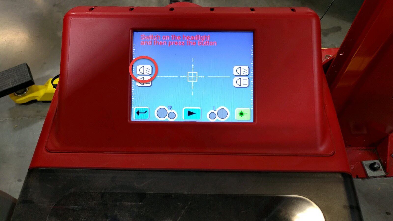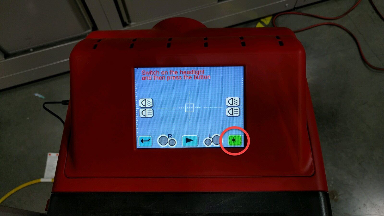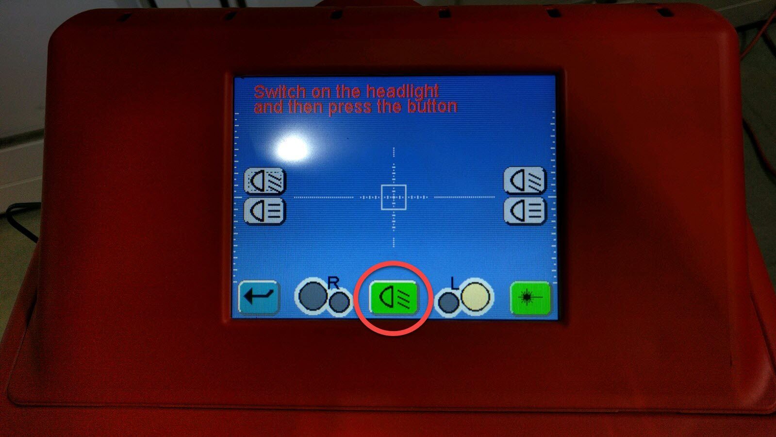 - Power on the headlight aimer.