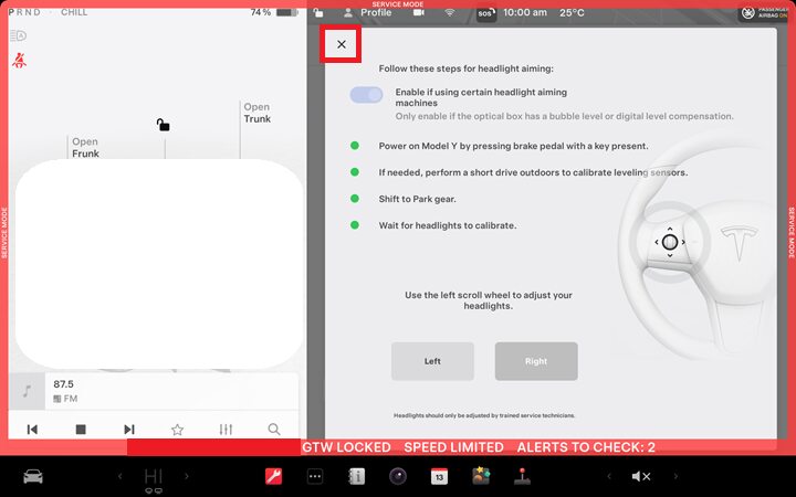 Exit headlight adjustment mode from the touchscreen.