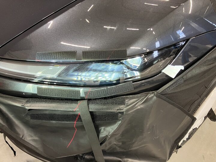 - Position the headlight aimer in front of the RH headlight, and then repeat steps 12 to 15 for the RH headlight.