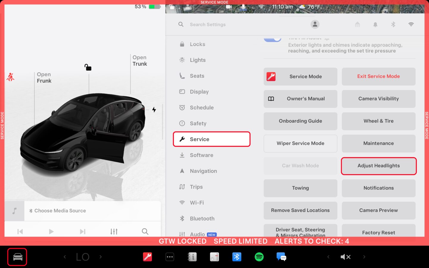 Enter the headlight aiming mode through the touchscreen.