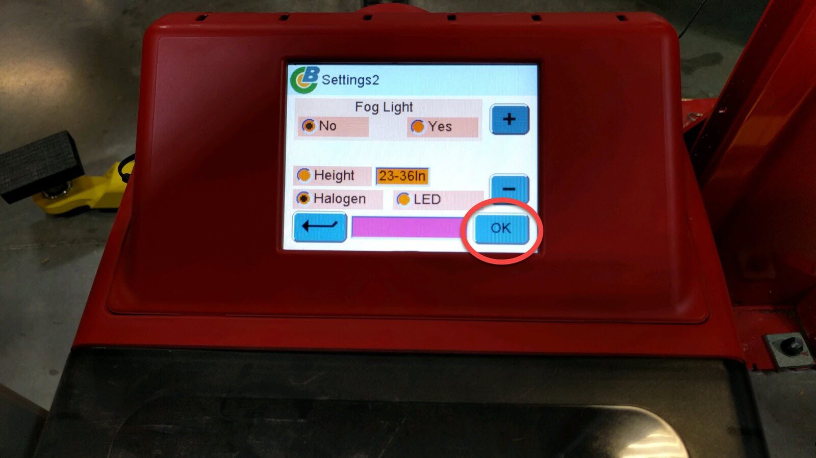 Select OK again to pass fog light settings.
